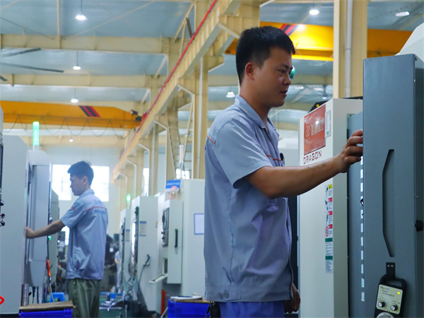 2022年8月4日,洛陽市宜陽縣制造業開發區的洛陽博盈軸承有限公司,工人們正在生產、裝配和檢測一批高精度機床轉臺軸承。